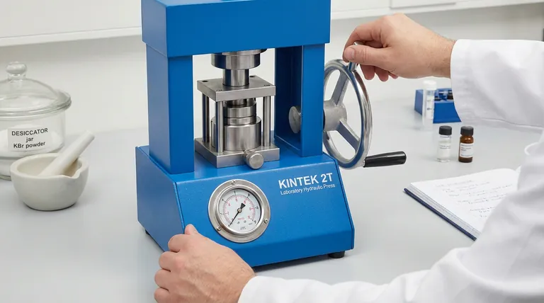 هل أنت مستعد لتحسين تحضير العينات في مختبرك باستخدام مكابس هيدروليكية موثوقة؟ تتخصص KINTEK في ماكينات الضغط المختبرية، بما في ذلك المكابس المختبرية الأوتوماتيكية والمتساوية الضغط والمسخنة، المصممة لتلبية الاحتياجات الدقيقة للمختبرات لتطبيقات مثل إنشاء كريات KBr.تضمن معداتنا تحكماً ثابتاً في الضغط والمتانة، مما يساعدك على تحقيق نتائج دقيقة للأشعة تحت الحمراء FTIR بسهولة. اتصل بنا اليوم لمناقشة كيف يمكن لحلولنا تبسيط سير عملك وتحسين النتائج التحليلية!