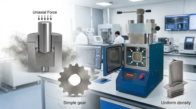 - إذا كان تركيزك الأساسي هو الإنتاج عالي الحجم للأشكال البسيطة: الكبس في القالب أحادي المحور هو المعيار الصناعي لسرعته التي لا تضاهى وأتمتته وتكلفته المنخفضة لكل جزء على نطاق واسع.