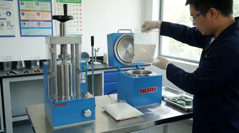 هل أنت مستعد لتعزيز كفاءة مختبرك بضغط مسحوق دقيق؟ تتخصص KINTEK في آلات ضغط المختبرات، بما في ذلك مكابس المختبرات الأوتوماتيكية، والمكابس المتساوية الساكنة، ومكابس المختبرات المدفأة، والمصممة خصيصًا لاحتياجات المختبرات. سواء كنت تعمل على نماذج أولية أو أجزاء معقدة، فإن معداتنا تضمن كثافة موحدة ونتائج عالية الجودة. اتصل بنا اليوم لمناقشة كيف يمكن أن تفيد حلولنا تطبيقاتك المحددة وتعزيز إنتاجيتك!